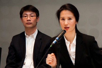 神韻巡迴藝術團團長李維娜(右)及舞台監督徐侃剛(左)在記者會上。(攝影﹕Jan Jekielek/大紀元)