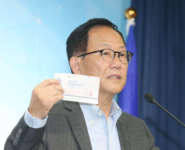 丁守中(圖)28日召開記者會,亮出支票,表示已準備好向法院聲請驗票,且不接受黨內資助。(中央社)