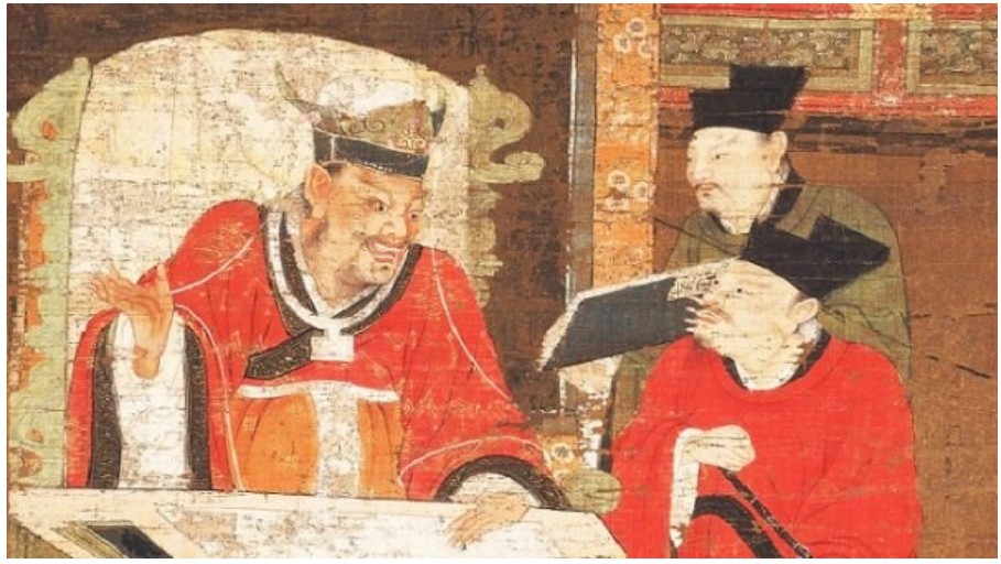何某惶恐不安的退了出來。看見那庭院廊廡的下面,書簿亂七八糟的堆放著,還有一些小官吏們驕橫地站在那裡,何某就問是怎麼回事,使者告訴他說:「這是朝代要換了,升降去留都是將來的官爵啊。」