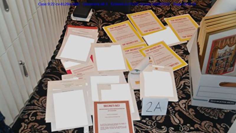 在這15個箱子中,除了一個箱子,聯邦調查局特工都找到了帶有分類標記的文件。聯邦調查局的宣誓書說,在這些記錄中,有67份文件被標記為「保密」(confidential);92份被標記為「機密」(secret);25份被標記為「絕密」(top secret)。