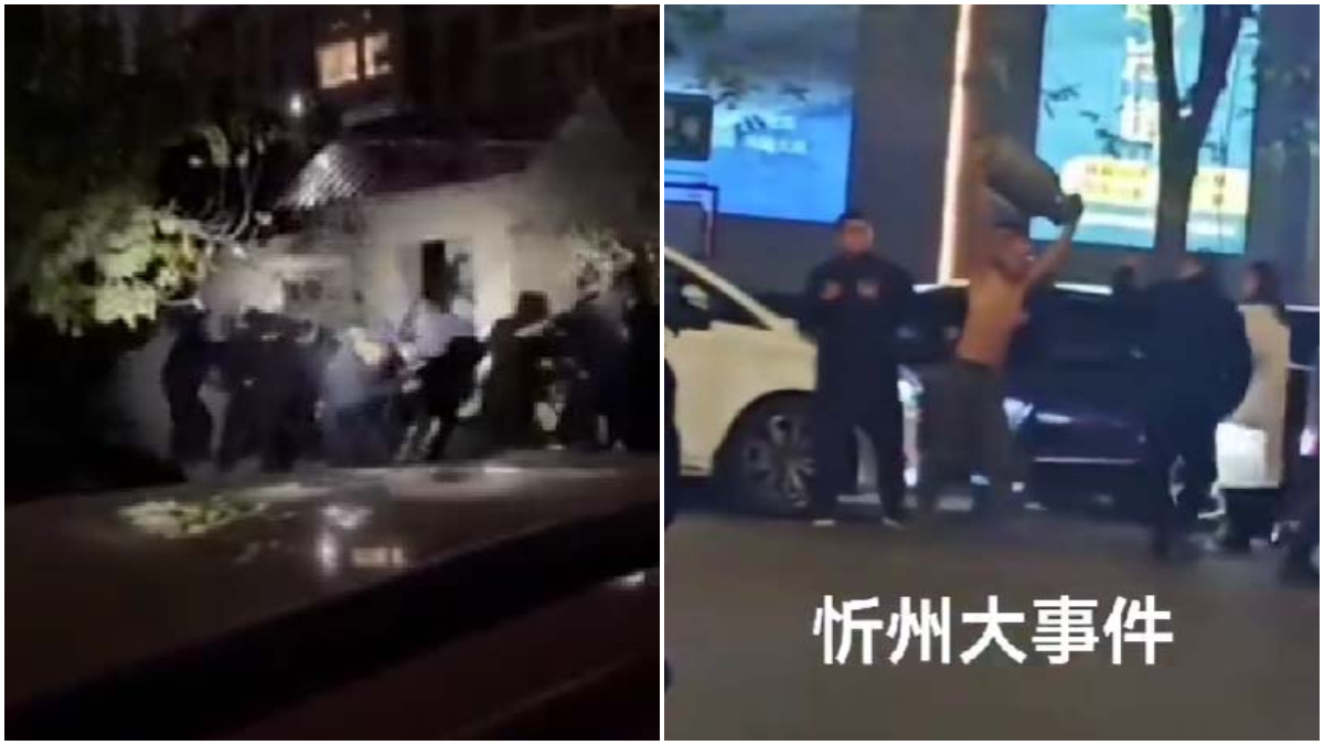 20日晚,山西忻州市也傳出一名商販持刀對抗公安和城管的視頻。視頻中,一街頭商販疑似持刀揮舞,幾名穿制服的官方人員急忙逃避,連警車也倒車後退。
