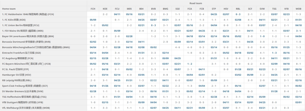 ¦ 拜仁慕尼黑隊(FCB)賽程賽果 ¦ 勒沃庫森隊(B04)賽程賽果 ¦
