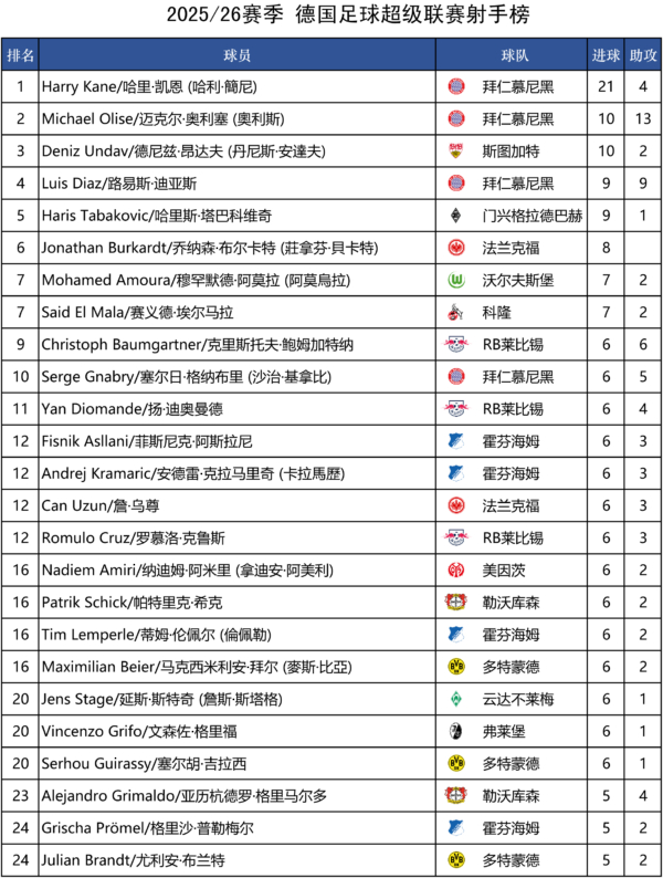 德甲積分榜:更多詳情請點擊⇒⇒Billd足球世界