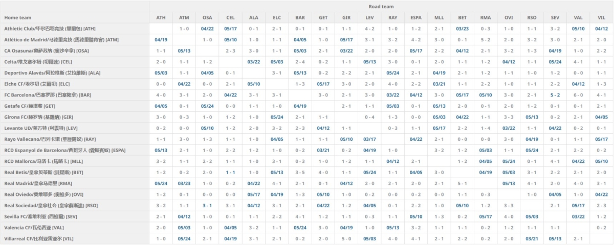 ¦ 王家馬德里隊(RMA)賽程賽果 ¦ 巴塞羅那隊(BAR)賽程賽果 ¦