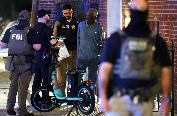 2025年8月14日,聯邦特工在華盛頓特區紐約大道長老教會外逮捕一名男子。(Alex Wong/Getty Images)