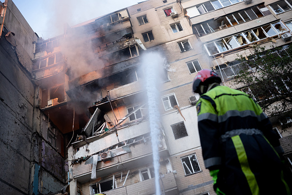 路透社記者目睹市內佩切爾斯基區(Pecherskyi)大樓竄起濃煙。烏克蘭空軍表示,大多數無人機被防空系統擊落,但仍有54架無人機和9枚飛彈擊中烏克蘭各地目標。