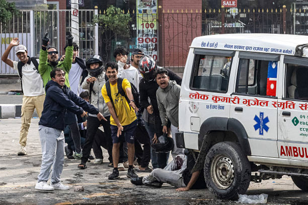 2025年9月8日,示威者在加德滿都議會大廈外舉行抗議活動,譴責政府對社群媒體的禁令和腐敗行為,並與防暴警察發生衝突。 9月8日,尼泊爾警方開槍射擊,造成至少19人死亡。(Photo by PRABIN RANABHAT/AFP via Getty Images)2025年9月8日,示威者在加德滿都議會大廈外舉行抗議活動,譴責政府對社群媒體的禁令和腐敗行為,並與防暴警察發生衝突。 9月8日,尼泊爾警方開槍射擊,造成至少17人死亡。(PRABIN RANABHAT/AFP via Getty Images)2025年9月8日,示威者在加德滿都議會大廈外舉行抗議活動,譴責政府對社群媒體的禁令和腐敗行為,並與防暴警察發生衝突。 9月8日,尼泊爾警方開槍射擊,造成至少19人死亡。(PRABIN RANABHAT/AFP via Getty Images)