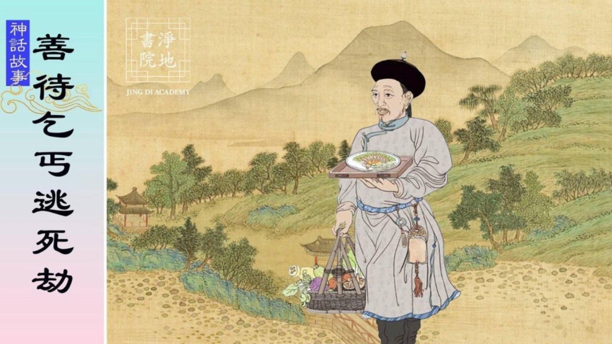 在一個寒冷的冬天,一個乞丐端著一個要飯碗來到陳家塘學堂要飯。學堂裏的學生要把他趕走,便往他身上扔石頭。無論學生們怎樣欺負,這乞丐都不生氣,一直都笑呵呵的。剛好這時有一位廚師從伙房裏走出來,他見狀便把學生們訓斥了一頓。