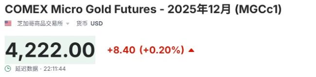 紐約商品交易所的期貨黃金COMEX金價也已重回4200美元上方,當地時間11月12日報收於4201.4美元/盎司,是10月21日金價大幅回落以來,連續第五個交易日上漲。截至目前(美東時間13日上午9時10分許),COMEX黃金期貨報4222.00美元/盎司。