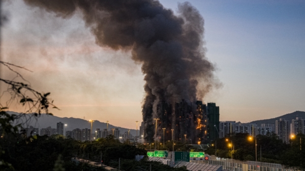 大火發生在香港新界大埔住宅區的「大埔宏福苑」,據信火勢是從建築物外部的竹製鷹架蔓延開來的,火勢迅速蔓延,下午3時02分,消防處將火警升為3級;3時34分升為4級;6點22分火警升至5級。畫面顯示,7棟大廈被大火吞沒。