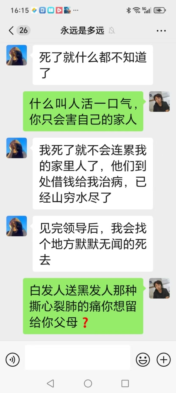 她說,自己被折磨得生不如死,家中也已負債纍纍。本來2024年官方與她簽署長期協議,承諾每月支付部分醫療費用,如今卻成了一紙空文。官方還限制她的治療行程。她已經失去活下去的勇氣。