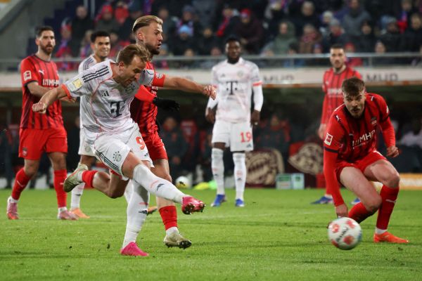 第86分鐘,斯坦尼西奇右路下底傳中,迪亞斯在門前近距離,俯身沖頂得手,為拜仁再下一城,提前終結了比賽懸念。傷停補時階段,格納布里送出妙傳,凱恩接球,冷靜晃開防守球員,低射破門,為「南大王」錦上添花。
