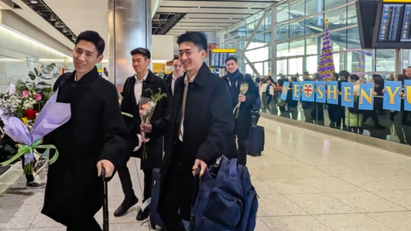 【新唐人北京時間2026年01月01日訊】2025年12月31日,在粉絲的熱切期盼中,美國神韻環球藝術團抵達英國倫敦希思羅機場,即將展開他們在英國為期兩個多月的演出行程。神韻藝術家將以完美的藝術盛宴,帶領當地觀眾體驗一場心靈之旅。