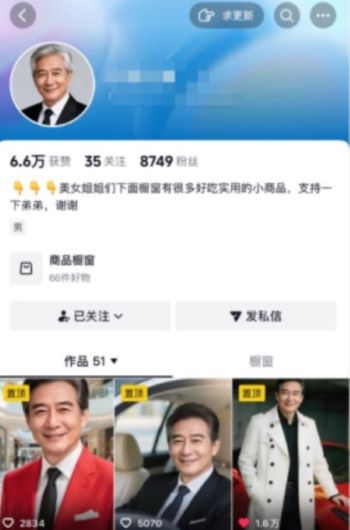 這類AI「霸總」的視頻往往能吸引大量中、老年女性關注,帳號粉絲數量動則數十萬,視頻下的點讚從幾萬到幾十萬不等。