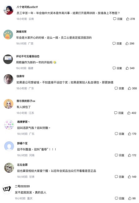 「員工辛苦一年,年會抽中大獎本是件高興事,結果打開是兩塊磚,放誰身上不憋屈?」