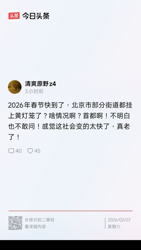 【新唐人北京時間2026年02月07日訊】中國黃歷傳統新年將至。近日,中國大陸多地街道掛滿了「黃燈籠」,從網友上傳的視頻顯示,河北、北京、山東等地有掛「黃燈籠」,引發熱議。有網友直呼:「像辦喪事。」「北京黃了。」「不祥預兆。」