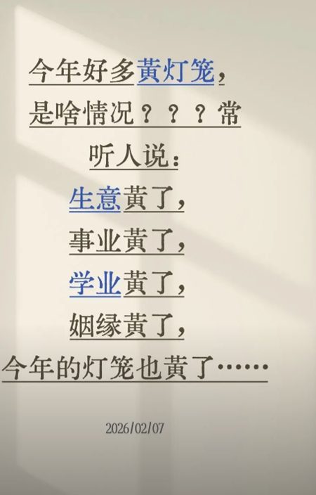 有人說,「到處都是(黃燈籠),我刷到七八個省份。」「確實黃燈怪怪的,不符合中國習俗。」「招魂幡是黃色的,黃燈籠就是招魂燈籠。」「第一次看見掛黃燈,感覺不像是過年,有點像地府陰森陰氣重。」