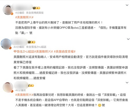 有的人數千張照片被刪,有的人不少視頻也被消失,甚至有的人恢復了又被刪,還有人把美團卸載了之後,手機還在自動刪除照片,這樣的情形讓人頭皮發麻。
