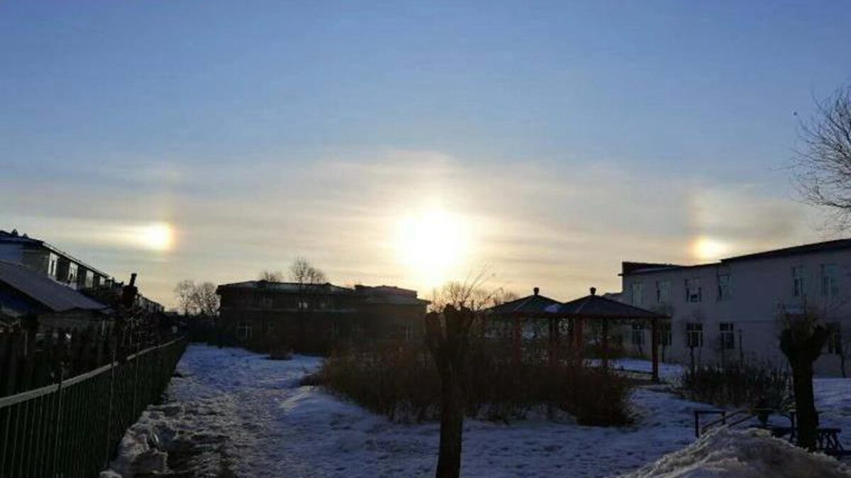 3月16日清晨6点左右,黑龙江省虎林市天空中惊现“三个太阳”的震撼景观。持续将近一个小时后才逐渐消失。从当地市民拍到的画面可看,虎林市东方红镇多处地方的上空,出现3个巨型的光圈。