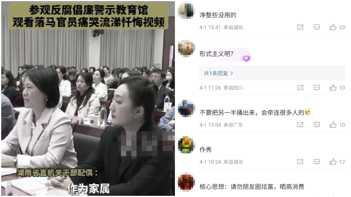 【新唐人北京时间2024年04月02日讯】中共官场制造“集体贪腐”奇观,当局“反腐”也不断上演各种闹剧。日前中共湖南纪委召集近140名“一把手”配偶进行“反贪教育”,引来网民嘲讽。