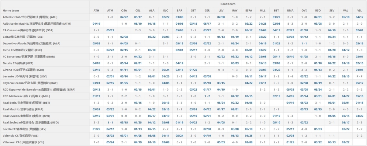 ¦ 王家马德里队(RMA)赛程赛果 ¦ 巴塞罗那队(BAR)赛程赛果 ¦