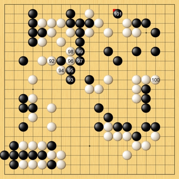 眼看颓势难以挽回,白棋最后选择认输,黑棋175手获得中盘胜利。