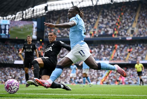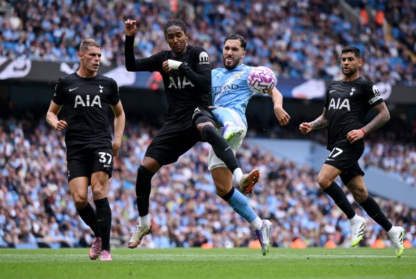 比赛开始后,曼城延续其一贯的控球打法,试图掌控比赛节奏;热刺也没打算被动防守,摆出了积极逼抢的姿态。第35分钟,场上僵局被打破。里沙利松在右路反越位后,横传门前,布伦南‧约翰逊包抄推射破门。随后VAR介入,判定进球有效,热刺取得1:0领先。