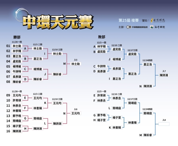 随着陈诗渊九段的晋级,第25届天元赛循环圈的名单也趋于完整。作为台湾围棋界最具代表性的头衔赛之一,天元赛的争夺已进入核心阶段。