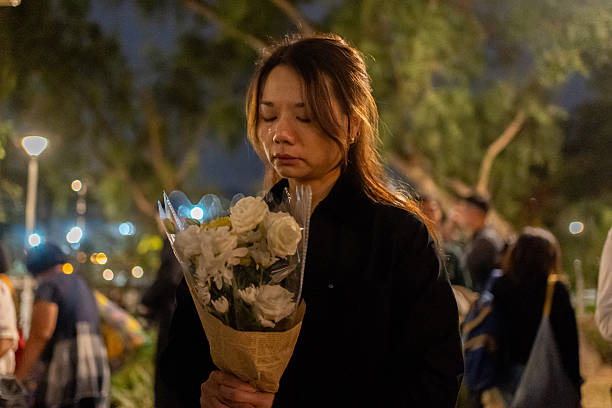 2025年11月30日,香港大埔区宏福苑发生致命火灾后,人们在附近的公园里献花,表达哀悼。(Anthony Kwan/Getty Images)
