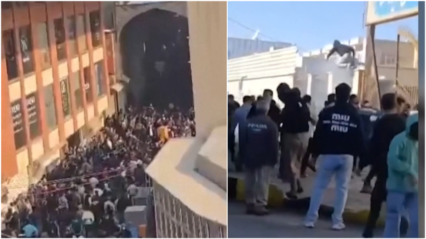 周二,在伊朗经济的核心地带——德黑兰大市集,大批民众在通道里举行静坐示威,遭到安全部队施放催泪瓦斯驱散,市集随后关闭。