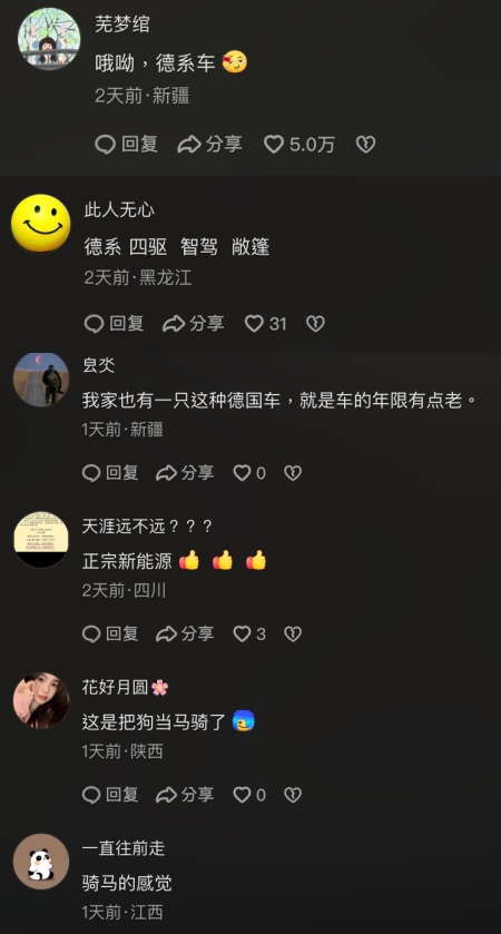 多位网友都拍到这个小男孩骑德牧上街的视频,网友纷纷调侃:“哦呦,德系车。”