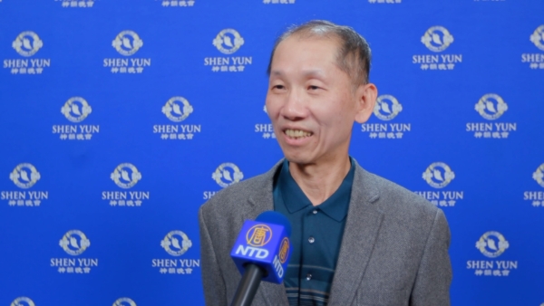 神韵感动各界精英,首次观赏神韵的大学理工副教授洪朝贵,赞叹天幕、演员与音乐的完美衔接。