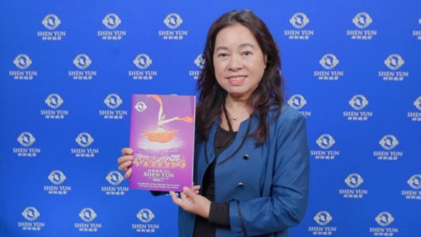郭美子:“神韵除了可以看到很美好的事物,很美好的舞蹈,还有很笑容可掬的那种舞蹈演员的那种神韵,她还有很多很美好的故事在里面。那个毅力真的很不得了,她(神韵)那个毅力是没有一般人可以做得到的,她(神韵)真的是用心,所以万事成,可以在纽约的总部飞天的剧场,然后到全世界这么多的演出。”