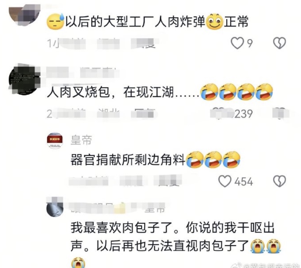 网友揶揄:“不是人肉包子吧”“器官捐献所剩边角料”“殡仪馆”?