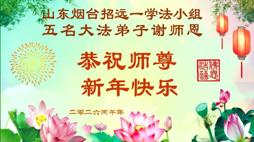 山东烟台招远一学法小组五名大法弟子恭祝伟大的师尊过年好!