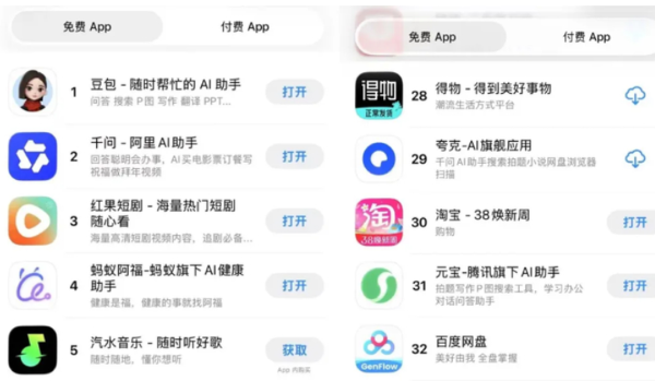 然而活动结束后,腾讯元宝的下载量及周用户数量双双暴跌。到2月22日,在苹果应用商店的免费应用榜单上,腾讯元宝排名已跌出前十;到2月23日,元宝排名更跌出前三十名。与此同时,周活跃用户数量也骤降70%。
